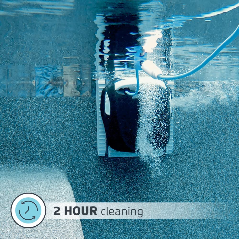 The Dolphin Explorer E30 cleans for 2 hours. You can set the robot to run daily via its included programmable timer.