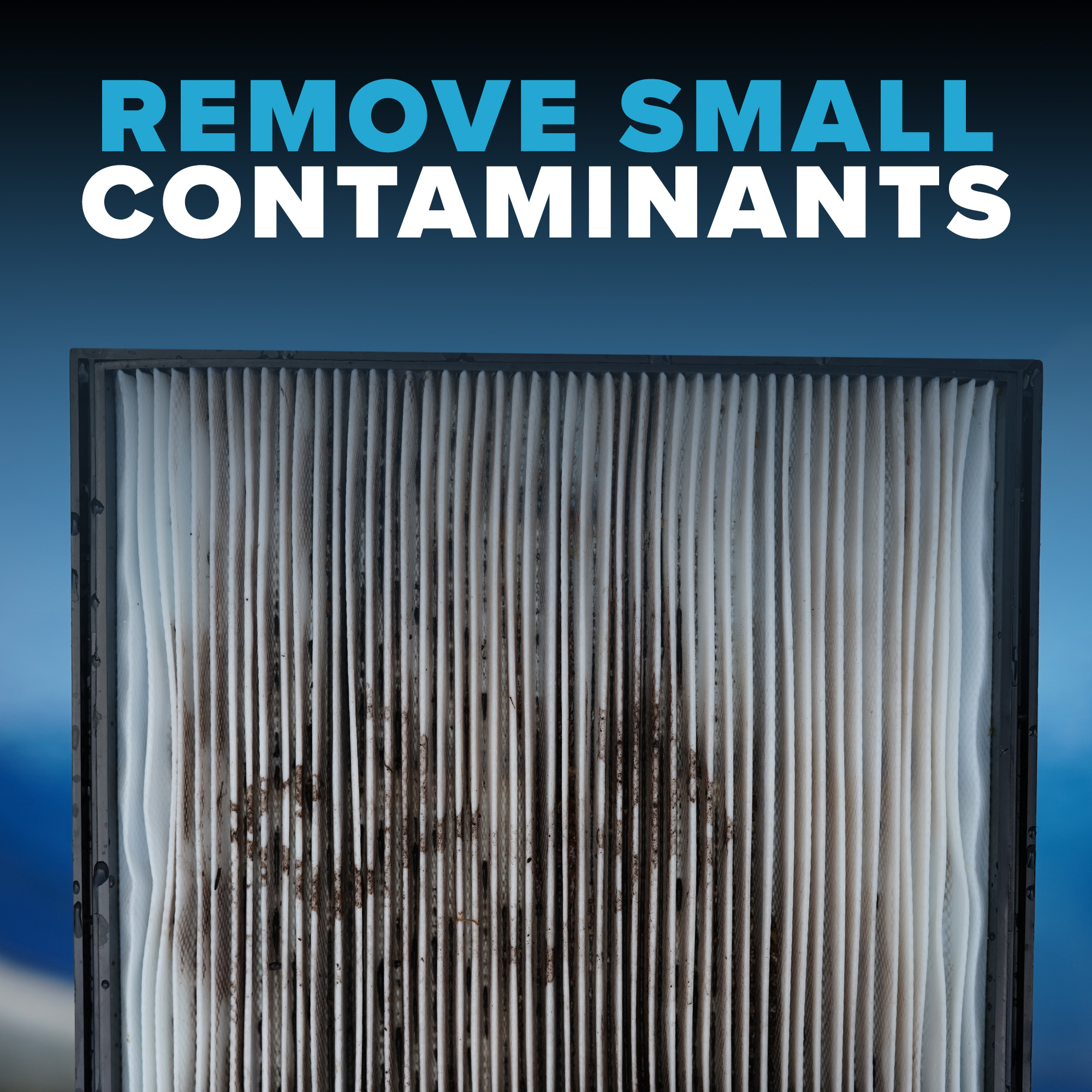 • Pleated high-efficiency nanofiltration retains small particulate and debris that pass through ordinary filters. Micro-pore material forms a tight mesh through which water flows and traps small contaminants
