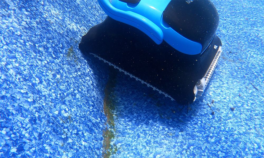 The CC Plus did an average job in terms of cleaning performance. It left behind strips of clean pool flooring after sucking up settled dirt and sand but struggled with larger debris like twigs and leaves. The dual spinning brushes help scrub away debris, but the unit could benefit from split spinning brushes like those found on the Dolphin Sigma, which would enhance its ability to maneuver underwater.